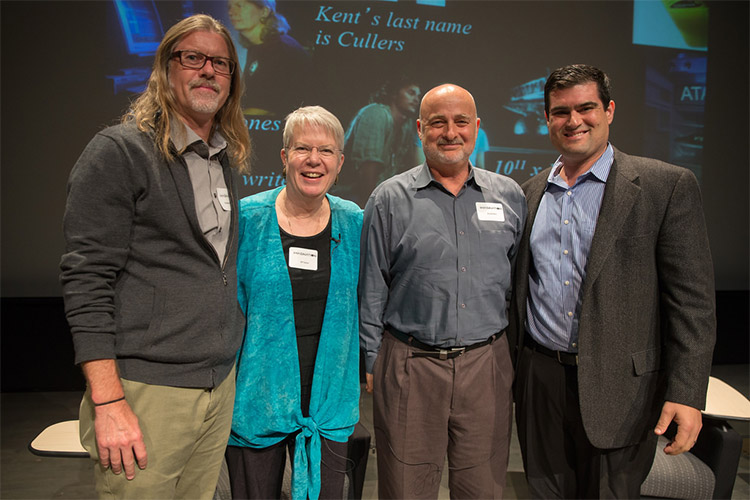 L-R: Sheldon Brown, Jill Tarter, David Brin, Brian Keating