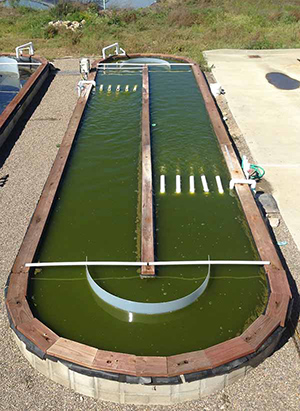 One of the outdoor ponds at UC San Diego used to grow algae for making biofuels.