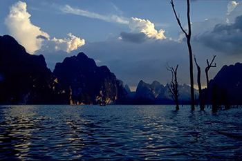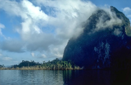 The reservoir is surrounded by a wildlife sanctuary and national park, which together make up the largest block of rainforest habitat in southern Thailand.