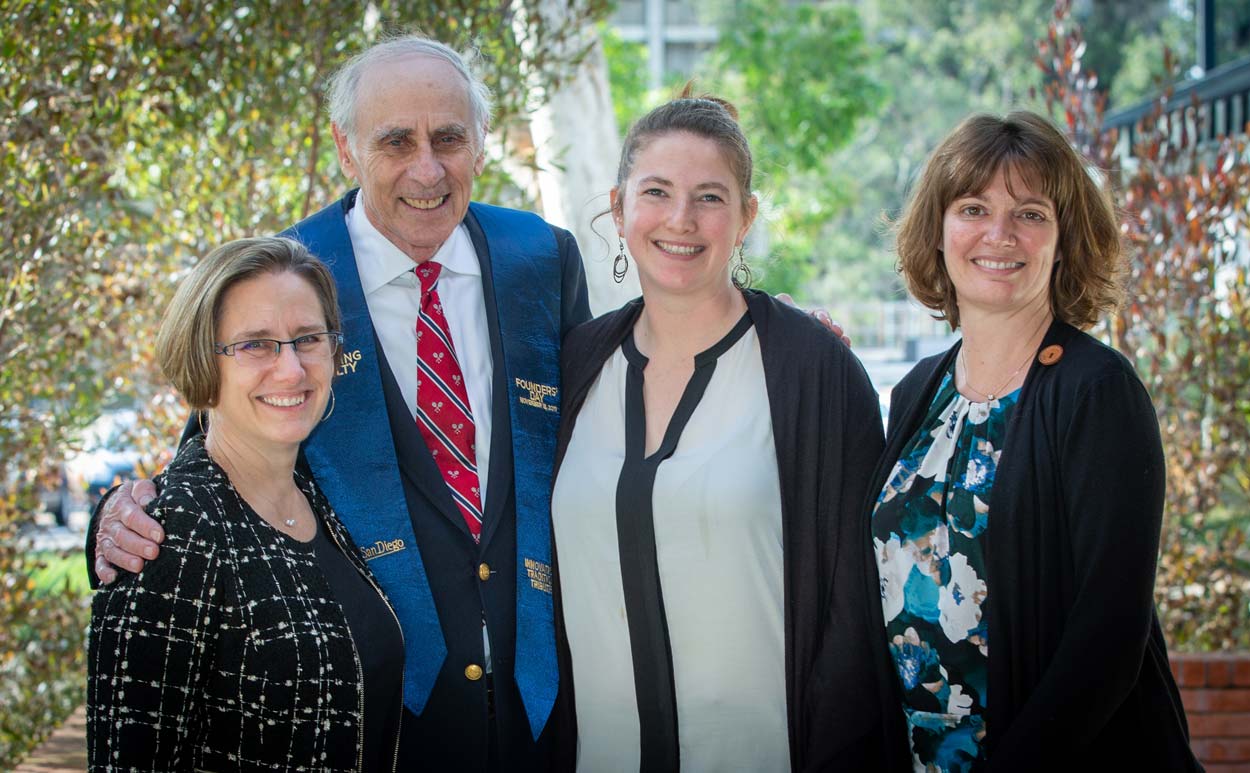 (left to right) Biological Sciences Dean Kit Pogliano, Professor Emeritus and Founding Faculty Member Stuart Brody, Founding Faculty Award winner Hannah Grunwald and Assistant Professor Kimberly Cooper.